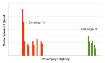 Second, simple annual or campaign response curves are disconnected from fligting. In other words, they do not take into account how media exposure to a particular channel was planned over the time and do not account for the possibility that different media planning can generate different results at the same level of spend. As such, the response curves do not provide guidelines for media flighting.