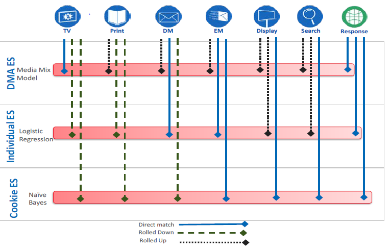 The models, typically built from weekly time series, are suitable for holistic measurements that provide input into high-level recommendations. Their granularity is not sufficient for detailed recommendations or ‘on-the-fly’ optimisation.